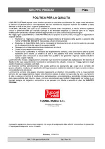 Con la ISO 9001, Tunnel Mobili è in grado di soddisfare i requisiti e gli standard, che un sistema di gestione deve possedere per fornire servizi o prodotti di qualità.